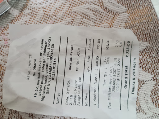 This is a good and spacious restaurant in the PDPU Road and service lane in Bhaijipura area. (Raysan side). It's on the first floor with no lifts. Proper sit and done restaurant. We had ordered the Chinese Hot Pot and vegetable spring rolls. The hot pot arrived first as mentioned by the head waiter. But the veg spring rolls took almost forever to arrive. The rolls we had were with some tough and thick rolls and not the usual thin and crisp ones we may be usually familiar with. We even ordered steamed rice as the hot pot was not enough for the three of us. This too arrived and the rolls had not arrived. The tables have some stenciled cut out mats which are unique but not very practical. Plates don't sit conveniently for us...