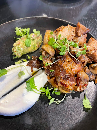 Chicken aglo olio appetiser - first our servers could not explain it they kept saying it’s chicken. Anyhow the flavour was close to nill until one scrapes the bottom of the plate for the very little sauce.