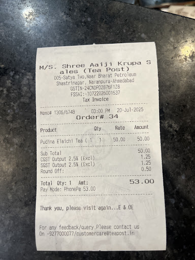 ย ย ย Read moreWe stopped by Tea Post for a snack and ordered pava, peri peri fries, a Mexican sandwich, and some tea. Everything was super tasty, Peri peri fries stole whole show, and it was nice and quiet when we got there, so we really enjoyed our time.