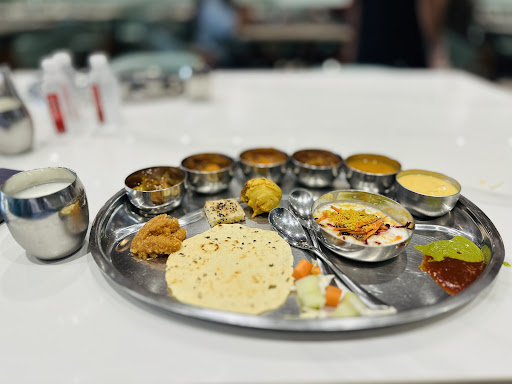 nice place if you want to eat thal or proper gujarati food. we went there in lunch time and it was going full, but the service and the food quality was appriciating. setup was prepared fast on arrival and team starts showing up one by one papad, salad, chass, sweet, shaak, daal, kadhi, farsan, rotli, rice and all comes in sequence and in line with live making. super service and super food.