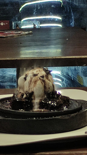 Sizzling Brownie --A sizzling touch is a great value-add for sizzling brownies. Mouth-wateringly delicious eggless sizzling brownies are made by arranging brownies, chocolate sauce and vanilla ice-cream in just the right way on a piping hot sizzler plate. Very delicious and tasty......