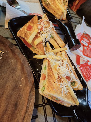 Β Β Β Read moreThe experience could have definitely been much better. We ordered 3 types of sandwiches, 1 pizza and 1 hot chocolate. The pizza is supposed to be 10 inches, but seemed a bit less, more like 8 inches. Experience in having pizza and the fact that the base was noticeably smaller than the wooden board it arrived in gave this impression. Being a bit liberal on the toppings would have helped. The sandwiches were fine, nothing to complain about, nothing to applaud as well. Hot chocolate was good. Apart from food, the ambiance is okay. Indoors has loud music, a big tv etc. outdoors offers good views of the surroundings and can be nice depending on the weather and company. The toilet is currently undergoing an upgrade, hence it is completely demolished, with no alternate arrangements in place....