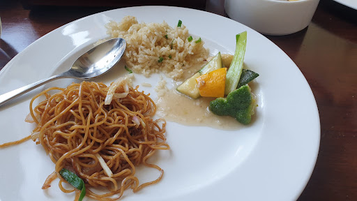 The food was good. The garlic bread was done on in-house focaccia - it was comfort food. The noodles and rice were great, and so was the stewed mixed vegetables. The dessert was excellent. The mushroom soup could've had some more traces of mushroom. The coffee could black coffee could definitely been better - from the bean selection to the brewing.