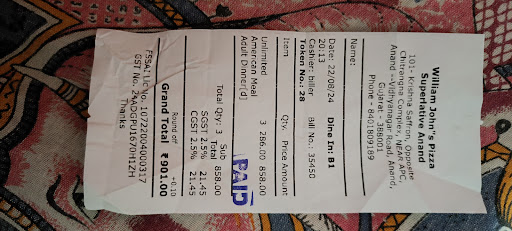 Read moreWorst food 🍕 & place, I have ever visited. Do not understand why ‘William John’s Pizza’ outlet has approved such a store, where there are so many things which I found were inappropriate, unacceptable, and unsuitable. I would like to note it down thoroughly: