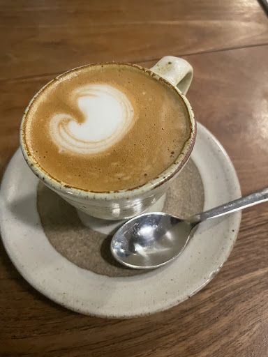 With my drinks in hand, I found a cozy corner seat, bathed in the warm, dimly lit glow of hanging bulbs. The macchiato latte arrived first, a delicate fusion of rich espresso, velvety steamed milk, and a drizzle of caramel. The first sip delivered a delightful blend of sweetness and the robust kick of espresso, a perfect contrast for the evening.