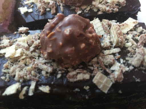 Ferrero Rocher : Moist layers of chocolate with ferrero Rocher on top. Th sponge was soft and texture perfect.
