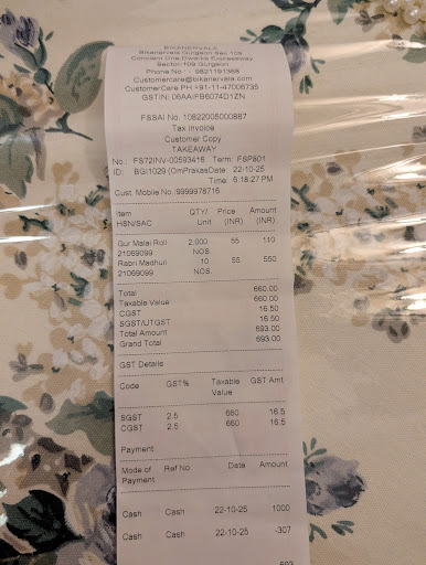 Update Bikanervala has started malpractice by weighing less. This happened multiple times at different counters. They are not properly measuring the sweets and including box weight. the boxes weight is 50gms but they just add 5 gms, the box weight 100 gms but they just add 50 gms. That too they are not measuring correctly even when informing. Sweets are worth 1000/- now and 50 gms weight is around Rs. 50/-. It is not about money but we pay whatever asked without even noticing. When we notice and found them to be doing this malpractice, even informing them, they are just saying, he is a new staff, trainee. It is about trust. They say desi ghee, now we are not checking but just going by words. Such small acts of earning few more from each customer is not suited to such a reputed brand. _------------- Now that various options like BK, PH are opening in an opposite shopping complex, it will be interesting to see how BKV will pull crowd Unfortunately the quality of Bikanervala is on decreasing trend. The dosa are burnt and black in color. The samosa and pyaaz kachori which were good earlier are worse. The air fryer does not work and cold snack items are served. Earlier the service was good but with time, it has degraded. ------------------+ Pyaaz kachori and samosa are good, jalebi imarti are crispy and made fresh, served hot, clean place, can improve air cooling, can add few children dishes without spice, menu...