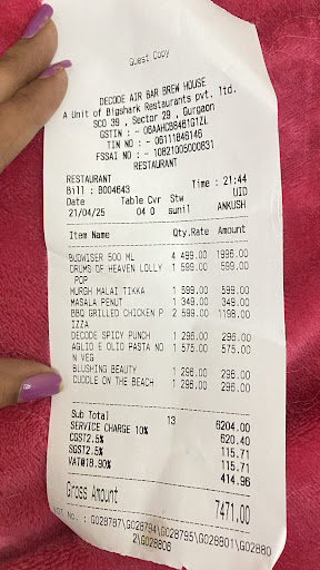 Overall Impression: In conclusion, Decode Air Bar is a gem in gurgaon sector 29 for those looking to enjoy great food, fantastic music, and exceptional drinks all in one place.