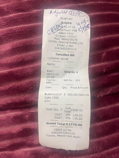 Read moreI am writing to express my dissatisfaction with the cakes I recently ordered for my daughter's birthday celebration. Unfortunately, the experience did not meet our expectations. Firstly, the quality of both cakes was subpar. The fondant cake, which was supposed to be a highlight of the celebration, had issues in both taste and presentation. To my disappointment, I discovered a significant flaw in the finishing—there was visible dust and even a hair particle embedded in the fondant of one of the cakes. This not only compromised the aesthetics but also raised concerns about hygiene and food safety. Moreover, the mango cake, which should have been a delightful treat for our guests, turned out to be stale. It lacked the freshness and flavor that one would expect from a premium bakery such as Eclair's. This was particularly disheartening as it affected the overall enjoyment of the celebration. Additionally, I must express my dissatisfaction with the manner in which my feedback was received. Denise, Instead of acknowledging the shortcomings and addressing them constructively, she appeared more interested in defending the bakery's reputation. As a customer, I expect a more empathetic and proactive approach towards resolving concerns. I want to emphasize that this experience has left me deeply unsatisfied, especially considering the importance of the occasion—the celebration of my daughter's birthday. In light of these issues, I kindly request a refund for the cakes in question. I believe it is only fair given the extent of the disappointment and...