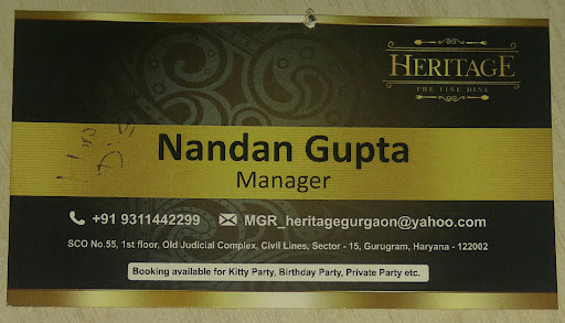 Read moreWe have been there in so many restaurants in Gurugram over the time, it was an amazing experience having food with family & friends at birthday party of our son. Cool place, no rush, good service, awesome food, neat and clean area. Kids & family both can have good time while enjoying any special occasion & just a simple dining. In starter, we usually order Paneer Tikka, but we listen about Hara Bhara Kabab & this time order it, & we never disappointed. I never ever it before Hara Bhara Kabab so testy. Dhaaba Dal was so testy, everyone in our family & friends liked it. There is free parking near the restaurant & easily reachable in Gurugram. Price of various things in Manu is kind of ok, not so costly no so cheaper. I would recommend every one to visit #HaritageTheFineDine at least once when...