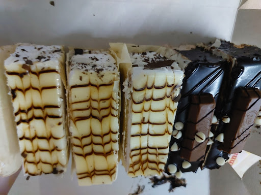 Look! I am buying cake from this shop from about 2 years. So, here we go. First of all there is no parking space so prefer coming here by 2 wheeler, There is proper sanitizing and temperature checking. Cakes are fresh yet vegetarian. I really like their chocolate cake and Other snacks. They also have normal grocery items and some snacks like patties, frozen burgers, Stuffed kulcha, Hot dog, etc.. Well, there's a problem happened with me. I baught 4 patties and 2 kulchas so the patties were not fresh! It was having a hair in it Yuck! You know that was unexpectable from such a bakery! Kulcha was as usual. Unfortunately I didn't have a photo of it so... Anyways, Place is Ok, Cakes are perfect and Yes I'll suggest you...