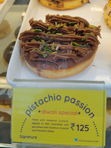 Contemporary outlet of a chain donut bakery selling instore & delivering boxes to customers' doors.