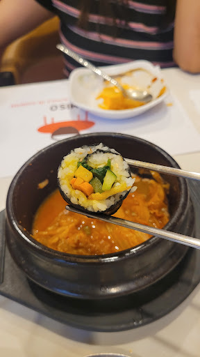 We ordered samgyeupsal , sweet and sour chicken , tuna kimbab for starters. Also ordered a bottle of soju . I love how korean restaurants serve banchan to munch along with food. The kimchi and pancake served as part of banchan was great. Samgyeupsal came with fresh greens , you have to make a pancake of greens with the meat and condiments and eat it. So healthy and fresh. The chicken was great too, tasted like orange chicken we had in usa. We also ordered chicken dolsot bibimbap and it was served with kimchi soup. Both items were great, kimchi soup had a lot of kick . Finally they served complimentary fresh honey melons and mandarins at the end of the meal. The ambience of the place is good and the staff polite . Loved our fathers day meal at...