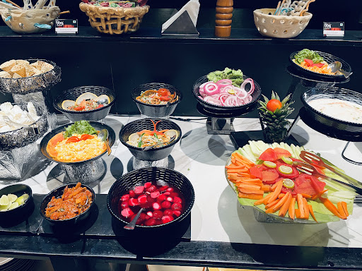 Nonvegetarian starters were not up to the mark. For example, in chicken wings, they cooked old meat, and in masala tangdi, it was also old and flavored with more masalas. Apart from that, the first time, the mutton seekh kebab was so good, but after that, it was also not properly cooked. Corn was also sometimes served tasteless (with salt) and undercooked. Moreover, if we were repeating any items, I felt, the quality was intentionally reduced. The desert was okay, and options for fruits and vegetables were limited.