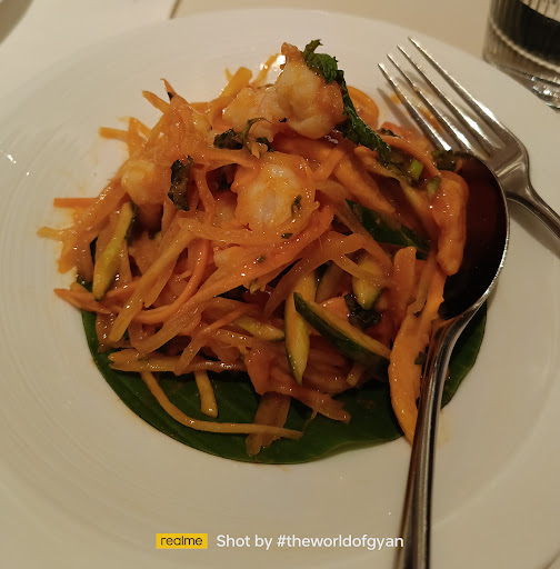 Read moreIt's our daughter's 13th birthday , so today's dinner was supposed to be special. We have dined here many times and have stayed here also. My daughter ordered her favourite Chicken Tikka Thin Crust Pizza . She shared it with us I ordered two dishes to share from the summer menu - Thai Prawn n Mango Salad . So fresh , crunchy and delicious 😋🤤 and Raw Mango Chilli Chicken which came with a Paratha . Confusion se bhara dish , bura nahi tha par Geographic location nahi pata chal paa Raha tha 😜 My husband made the best choice as always..He ordered the Mixed Grill which came with Truffle Fries and Orange Fennel Sauce . Excellent Lamb. That's the only thing I tried from the plate and most of the Fries 🤩 .Ek Cauliflower fritters ka portion aana tha Jo hum chale gaye phir bhi nahi aaya . We didn't wait because we were full.
