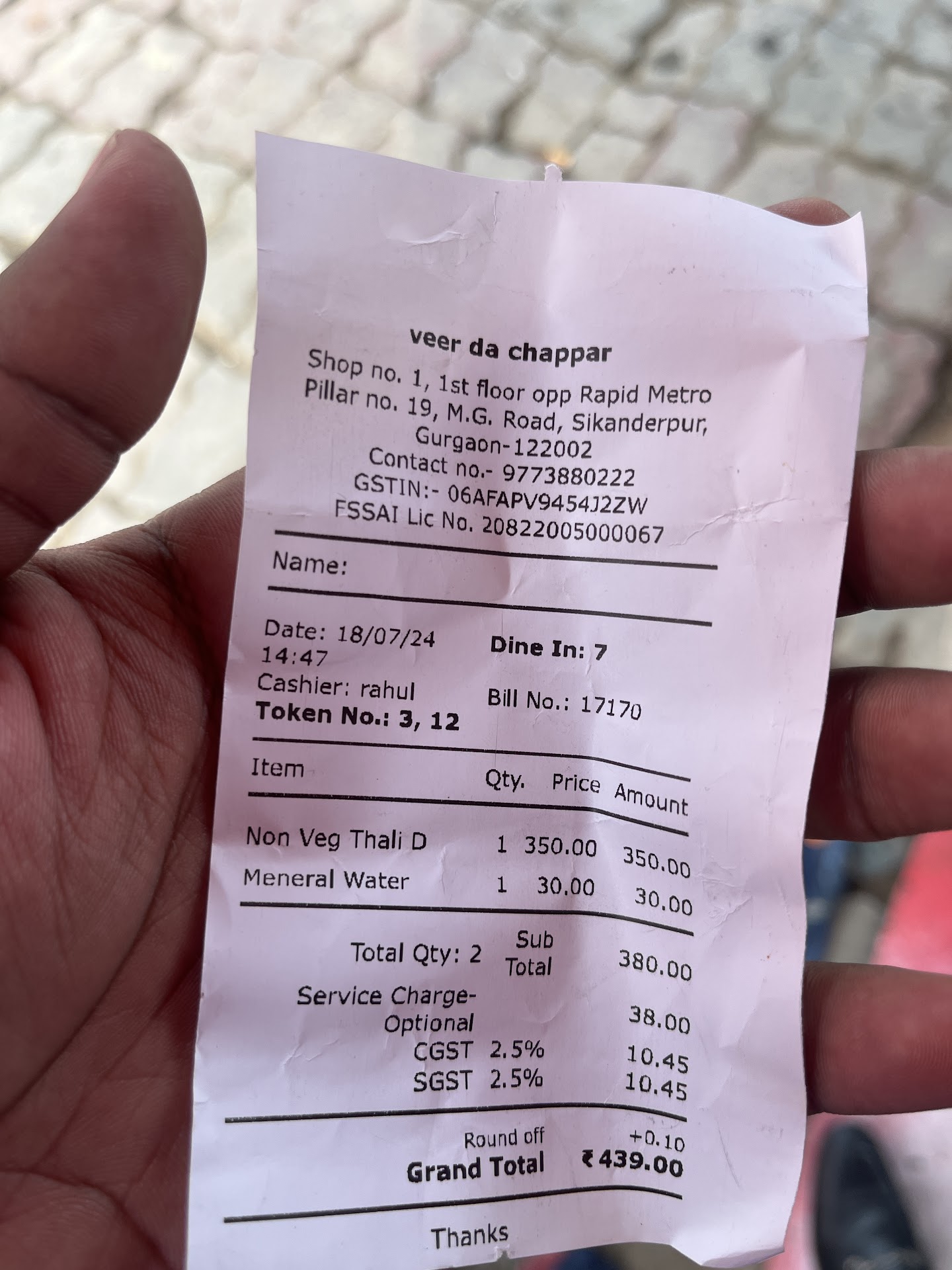 To add to the distress, Veer Da Dhaba levied an exorbitant service charge, which was not only unwarranted but also unjustified considering the appalling service we received. The waitstaff appeared disinterested and inattentive, making us feel like an inconvenience rather than valued customers. Our requests for water and additional napkins were met with dismissive gestures, leaving us frustrated and disappointed.