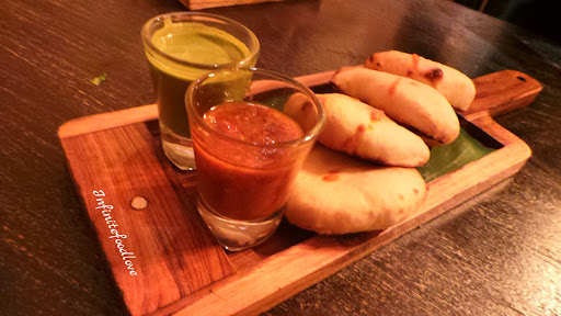Quattro formaggi kulcha :These kulcha served with 2 different chutney's and overloaded with cheese and it was too đ„ hot to handle but its taste is delicious đ