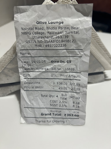 I would recommend Olive Lounge to anyone looking for good vegetarian food in Haldwani. However, I would advise against ordering the chicken or mutton dishes.