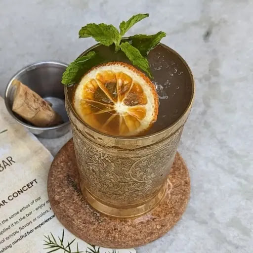 Rani - a fantastic cocktail made using Vodka, 'Aamada', Fresh Lime & Honey. It's refreshing with little hints of Mango Ginger. Served in brass glasses specifically sourced for this Cocktail alone. It's one Cocktail that the Ajá team is proud of, and rightly so!