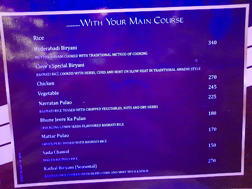 Read more(23-06-2019) last night i visited Clove99 for dinner because many of my friends suggested me, so when i visited i saw one table empty (recently someone have done their dinner) & not cleaned & no reservation that time.. so before our sitting i confirm one of waiter that this table is reserved or not for any one, we sat and asked for cleaning our table but no one come to clean, everyone busy in serving other tables, i called one of them and again asked for cleaning this time waiter said sir please wait i will clean, but our table cleaned by 3rd my call. but our table not cleaned correctly, at last we ordered and received our meal within 10-15 mints, we eat kadhai panner(tastes so so), clove's special dal makhni tastes less then so so beacuse of there is no makhni inside or garnished by makhni and dal was not as i tasted lots of restaurants. all over i didn't like service and food of clove99 i waste Rs.800, i suggest please visit clove99 at your own risk .... thank you for reading and good...