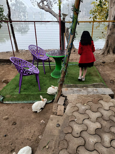 The café not clearly visible from banks of the lake due to dense trees. As you reach there then you find heaven out there. The entrance is decorated with hanging flowers as in marriage gardens. You will see geese and Rabbits roaming freely around the area. Though rain has deformed the shape of bank but it seems good enough. The restaurant is Air Conditioned with enough of seating arrangements. The table soccer Game is the centre of attraction for customers. Menu in the restaurant is Fast Food that includes Pizza bread, mojitos, strict Vegetarian, tea and coffee etc. good place for celebration of small party. Food...