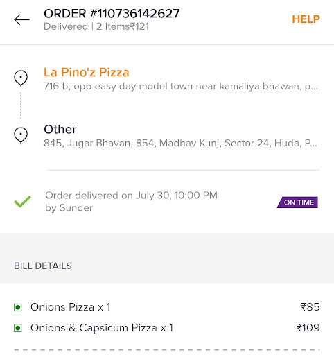 I've ordered 2 Pizza from Swiggy, pizza was very bad in quality I've tried la pino at Chandigarh that was far better than Panipat one. Toppings., The worst toppings I've even eaten they were so small you can't even taste them. In the pizza. I use bigger toppings in my Maggie then you guys using in pizza ( fined chopped) Less cheese more mayonnaise, it was okayish in taste but less chese was there.