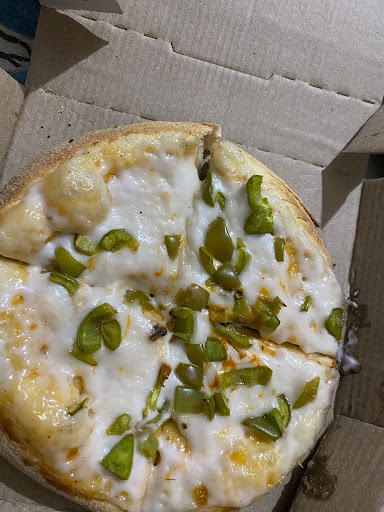 Place is small. Sitting arrangements are outside the shop (just 2 tables and 6 chairs) And i don't know what to say but they put both cheese and some kind of creme instead of sprinkling just cheese. It tastes weird. But pizzas starting from Rs. 55/- (pan) so i guess that's fair. What else you expect. Burgers...