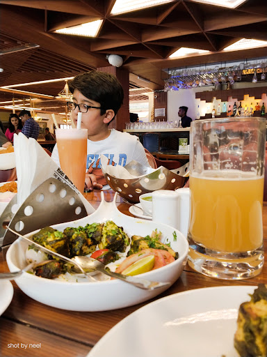 The cuisine is one to fall in love with- Pan Indian and Oriental and also live grills to set the mood with some innovative cocktails and mocktails from the bar section.
