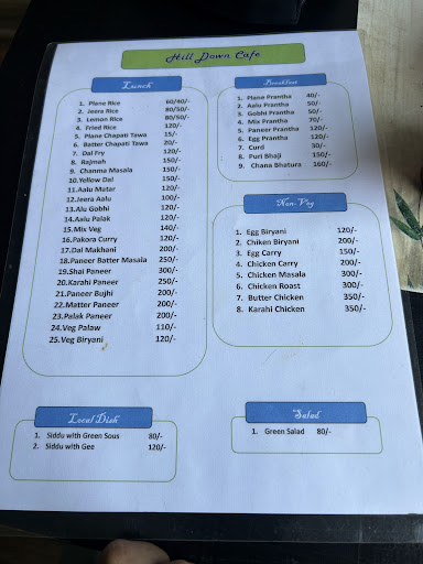 Hill Down Cafe is the perfect place to dine in. We ordered Dal Makhani, Paneer Bhurji, and Mix Veg, and to our surprise, all three dishes were delicious and freshly made. The behavior of the cafe owner and staff was also very good, and their service was impeccable. Finally, the price of all the food was very budget-friendly. We thoroughly enjoyed...