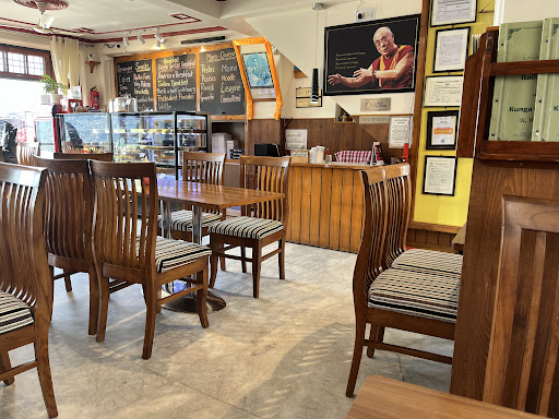 The place is enjoyable. Has a terrace which offers a good view of Bhagsunag and McLeodganj. The Cafe is airy and the windows are comparatively large that allows for cross ventilation, which lacks at other places. As you enter the Cafe you bypass the desserts counter which has on display an assortment of confections and other baked foods like a variety of quiches. I associate McLeodganj with apple pies and apple crumble as they always seem to be perfect with just about the right proportion of cinnamon to apples.