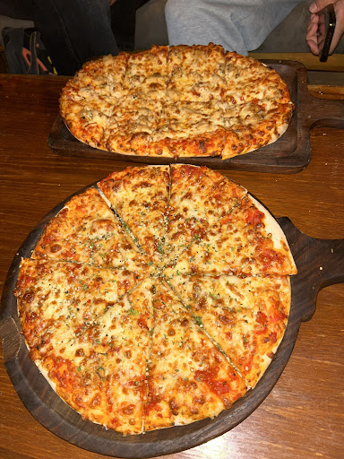 The Pizza was bland, the crust was hard, the cheese felt low quality.