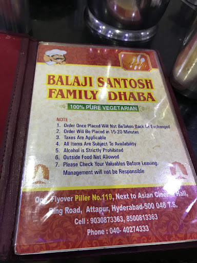 Dear Management of Balaji Santosh Family Dhaba Attapur, I am you one of the old customer. I felt very dishearten the way you guys serving food now to your customers. Now food quality and quantity both are worst, service is pathetic, behavior of your waiters are horrible ( I felt like hitting them with plates) trust me you guys are loosing your values. Last experience along with my family is one of the worst experience i ever face in...