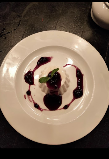 Panna cotta with blue berry. Its not everyones cup panne cotta to make that and serve with eligence. This was soft and toped with blue berry slash.