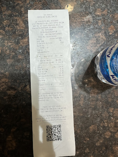 Read moreOrdered a flavoured cappuccino at the store. As I felt there was something wrong in the billing amount, after paying it I asked for a costumer copy of the bill and found out that they have charged a bill with extra espresso of 52 Rs + 5% GST. This was my second time experience at CCD store with same kind of scam(first was in CCD, Mumbai). When I enquired the employee about the same, they asked me if I need anything else with 52rs or Cash refund by ignoring 5% GST (around 2-3 rs in my case) which I too didn't think off. But if you consider those costumers who don't even look at the bill, Just imagine how much money these people are extracting per day in this country. That is how CCD is fooling people and extracting money from their costumers. I already experienced it previously so I understand it but for people who don't check bills, they get scammed easily by this trick. Be Aware and Alert...
