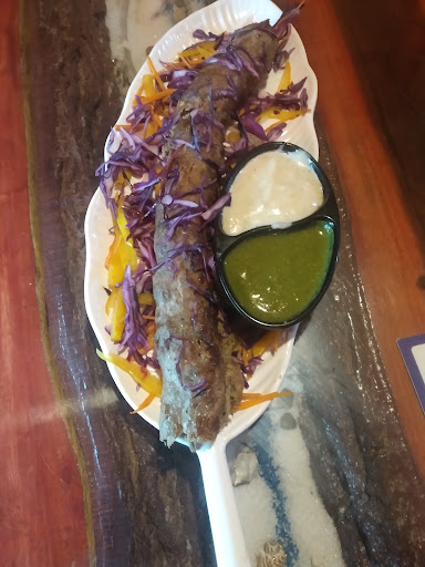 4.Mutton Sheekh Kebab.A long hollow piece of finely grinded mutton which was cooked perfectly.Served along with a mint chutney and mayo.Price INR 160 ππππ