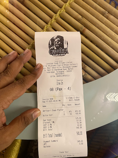 Portions are generous, prices are pocket-friendly, and the overall experience is elevated by the vibrant Punjabi wedding-themed décor, Chamkila-inspired artwork, and lively Punjabi music playing in the background.