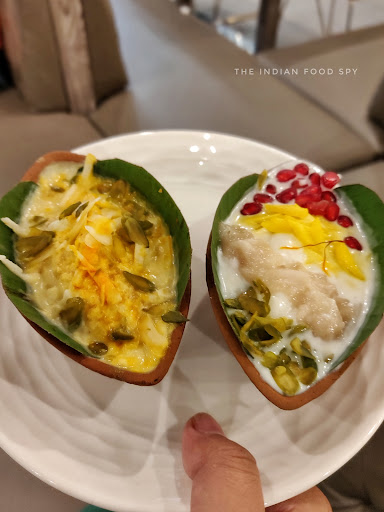 Desserts: MOTICHUR KE LADDU, as we Indians like, "Ghee mein doobe hue". THANDAI CHAM CHAM and SITAPHAL CHAM CHAM, so creamy. GULAB-KHEER CAKE, the best dessert of the night. Beautiful presentation, and had a subtle "gulab" taste, not too heavy. CHEESE KUNAFA, was the tweaked version of this Turkish delicacy. It had a mix of kalakand, cheese and topped with loads of desi ghee. KAAJU KATLI and KAAJU KATORI, as usual, was a delight.