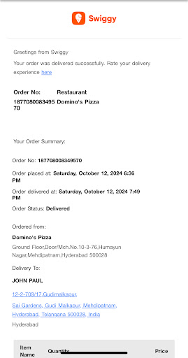 What’s even more frustrating is that my payment was successfully processed, but neither the order got delivered nor was any refund initiated and it's been 12 hours. My money is still stuck with them and no one has taken responsibility—neither Domino’s nor Swiggy. Swiggy promised that I will get a call from Domino's and I still didn't get.