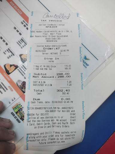 Read moreNot trust worthy. I had been to the store and ordered pizza and waited for an hour but still I didn't get my pizza. I went to the booking section and asked why is it taking time? Now they were saying that there is some inspection going on and they cannot make pizza. I have waited for so long and until I ask they didn't reply. This not only happened for me but for others as well. I have asked them to cancel my order and they said they will cancel it but they asked 30min to do it. I said ok and for safety purpose I have taken the screenshot of the receipt I ordered so that I can check with them if I don't get my money back. I waited for 2 days and called the dominos customer care and said the same. I got reply saying it takes 5 days to get my money back. So I waited for 7 days and yet I didn't get my money. I again called the customer care and shared the order no and details, the support team called the store and verified the details and said the store people will call me within 15 min. It's been 2 days and yet I didn't get a call. Adding the...