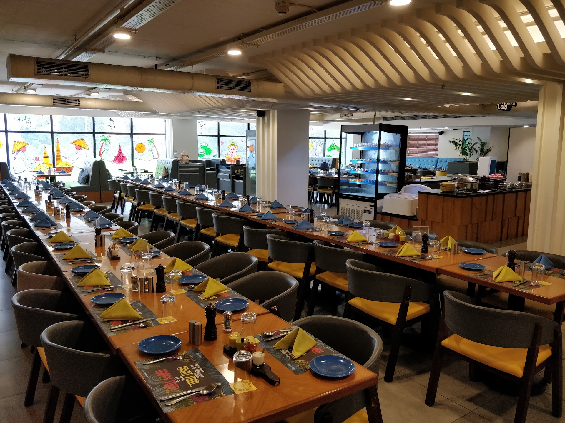 #Maincourse: Wok Tossed paneer in spicy peanut butter Ching Ling Baby corn Lankan aubergine curry Aloo gulat Dum ka kofta Divine trio(corn,mushrooms and spinach) classic dal makhni Tawa pulao steamed basmati rice Moon Fan rice Subz Dum biryani Pad Thai noodles