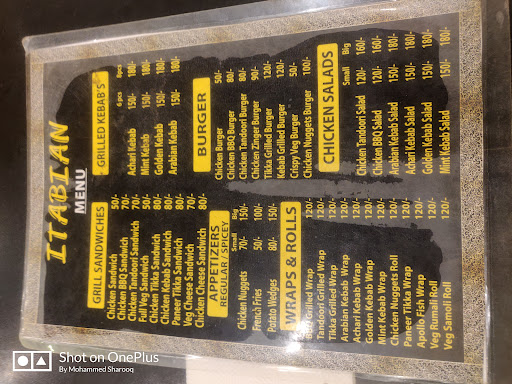 Read moreItabian Restro – Hyderabad (Malakpet) • Cuisine & Menu: Offers Lebanese, rolls, sandwiches, kebabs, and fast food. Popular for vegetarian options, customizable wraps like tandoori and Egyptian-style shawarma, chicken nuggets, fries, and tikka grilled burgers . • Ambience: A small, elegantly decorated eatery with indoor seating, cozy vibes, and a nice crowd . • Ratings & Reviews: • Zomato: 4.2★ dining, 4.4★ delivery (≈₹300 for two)  • Google: 4.3★ based on 164 reviews  • User Feedback: “Perfect perfect perfect” for taste & quality  “Ordered veg tandoori wrap, received non-veg… worst experience” () • Pricing & Accessibility: ₹300–400 for two; home delivery and takeaway available; indoor seating but no info on wheelchair access . • Location & Hours: Located at Chanchalguda/Circle 4 area (City Tower & Old MCH Circle), Malakpet. Opens around 12–1 PM until late evening (~11–12:30 PM) .