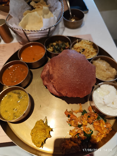 While the food arrived, it was a major letdown. The thali items were all cold along with the accompaniment papad. This was after we waited for 30 mins. To add to our disappointment the cold dishes made our meal unenjoyable. The bomb price that we paid for this thali, the number of items and the cold food is not at all in sync.