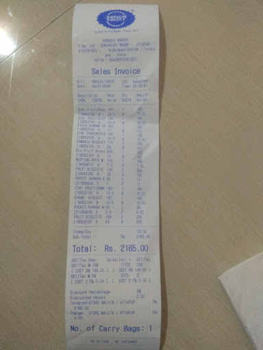 Read moreI have been purchasing regular cakes from this shop as it has been near to my house. As I am pure vegetarian, eggless cakes were my first priority which you get always readily available. Of late I am finding this particular shop has started selling cakes with egg also. That too is not a problem as it is difficult to find pure vegetarian bakery in hyderabad, actual problem lies in the quality of cakes, the cakes readily available are not properly baked and often you find raw maida paste in between the cake. It has not happened once but now is a regular feature. Earlier I had purchased during new year time and thought in bulk making of cakes it is an exception that I got half baked cake but now I have observed during normal time also that it's cakes are half baked. Now I have decided to give this particular branch a miss. It's not worth. Also I could not understand why same flavour and same weight cakes of karachi costs different at different different branches. Probably they have given franchise to locally bake cake and there is no quality check from original karachi bakery people, once brand name sells, people buy anything. A big thumbs down...