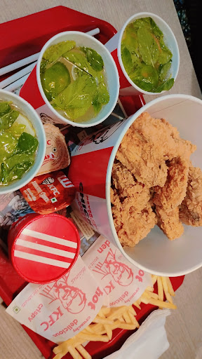 Read more"KFC with no AC", very dissatisfied... every time we visit this place they simply ignore our requests saying AC is under maintenance. We almost visited thrice the last two months and the same answer was told. Utter disappointment.😏🤐😐 When it comes to food always fingers licking. Fully crowded with people all the time. We ordered a Wednesday's special chicken bucket combo and one normal chicken bucket combo. Dippers are extra charged as you know. Kids friendly chairs are provided. Fundamentally offers chicken pieces, wraps, sandwiches and coleslaw. While its primary focus is fried chicken, KFC also offers a line of grilled and roasted chicken products, desserts and side dishes. They cook their products well over the minimum temperature recommended by WHO. Moreover, they also created a standard system program to reduce the danger of cross contamination between raw and prepared to-eat products. Technology in the kitchen is vital computers are the quickest and most effective way to do something implementing these things can only better the overall speed and efficiency of...