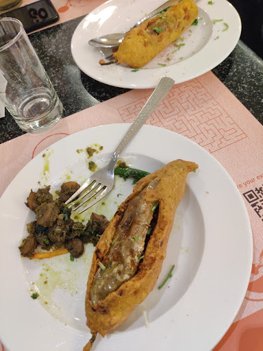 For starters, we tried the Veg Basket, which came with roll-shaped appetizers filled with a cheesy bell pepper stuffing. It was a nice mix of textures β crispy outside, soft and creamy inside β and a good option even if youβre not strictly vegetarian.