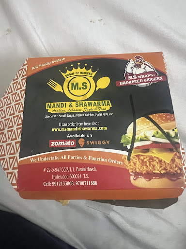 Read moreI recently ordered food from Zomato from MS Mandi and Shawarma and was extremely disappointed with my experience. To start, the chicken wrap that I ordered had a very bad smell that made it almost impossible to even try, the chicken inside smelled very bad, like it was spoilt.