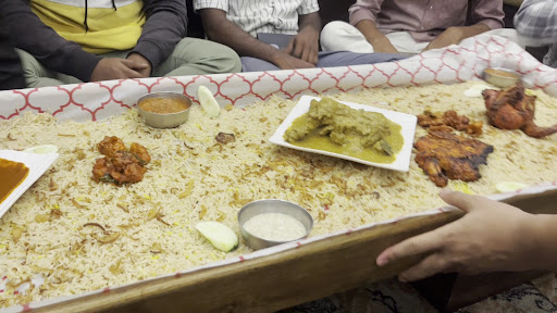 Awesome serving... Loved their service.... A nice place to get your feast done ✅☺️. Everything is made delicious with using all pure things and fresh things.... Meat , dryfruits and ghee will also be of good quality.. A place with all good facilities. Mandi is a traditional dish that originated from Hadhramaut, Yemen,consisting mainly of meat and rice with a special blend of spices, cooked in a pit underground. It is extremely popular and prevalent in most areas of the Arabian Peninsula, and even considered a staple dish in many regions. It is also found in Egypt, India, the Levant, and Turkey. Mandi was usually made from rice, meat (lamb, camel, goat or chicken), and a mixture of spices called hawaij. The meat used is usually a young and small sized lamb to enhance the taste further. Dry wood (traditionally, Samer or Gadha) is placed in the tandoor and burned to generate a lot of heat turning into charcoal.