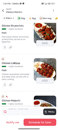 The menu at Mehfil Restaurant is extensive, and offers a wide variety of Hyderabadi and some North Indian dishes. The biryani is the restaurant's signature dish, and is made with basmati rice, saffron, spices, and meat . The kebabs are also popular, and come in a variety of flavors, including chicken, lamb, and beef. Other popular dishes include tandoori chicken, naan, and roti.