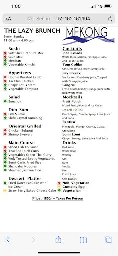 Now, let's talk about the food. Mekong restaurant specializes in Southeast Asian cuisine, and it truly exceeded my expectations. The menu offered a wide variety of dishes, ranging from aromatic curries to flavorful stir-fries. Each item was expertly prepared using fresh ingredients and traditional spices, resulting in a burst of flavors that danced on my taste buds.