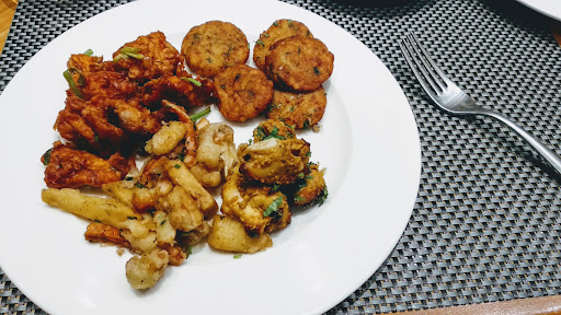 It included Chicken Tikka, Fish Tikka, Prawns, Harabhara Kebabs, Aloo tikka, Gobi Pakoda, etc. They were all good and we're tasty. I had two rounds of starters.